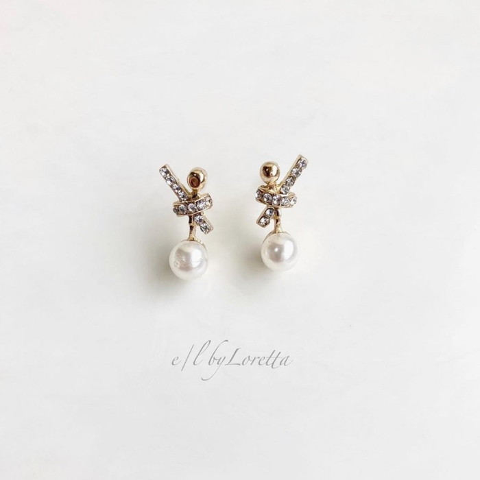 Mini circle 淡水パール × metal ball long pierce/earring(White) [cc] E/L byLoretta EL エルバイロレッタ accessory アクセサリー サークル 淡水パール メタルボール ホワイト ピアス イヤリング チタン 樹脂 ねじ式 クリップ式 両耳セット ハンドメイド